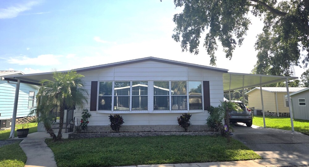 Step into this beautifully maintained 2 bedroom, 2 bathroom home that offers both comfort and functionality. From the moment you walk in, you ll feel right at home with a spacious layout that includes a living room and a separate family room perfect for relaxing or entertaining. The large kitchen island with stove and oven is ideal for anyone who loves to cook or gather with friends and family. All appliances are included, and the home is partially furnished for an easy move-in experience. Recent updates provide peace of mind such as new shingled roof in 2023, brand-new carpets in bedrooms in 2025, updated laminate vinyl plank flooring in front room, and newer AC unit in 2018. Both bathrooms offer step-in showers for added comfort and accessibility. The indoor laundry room adds everyday convenience, while built-in shelving offers practical storage solutions throughout. Enjoy Florida living on the charming lanai or outdoor deck, a perfect spot to unwind. This home has been lovingly cared for and is ready for its next chapter just bring your personal touch and move right in! Give us a call today!