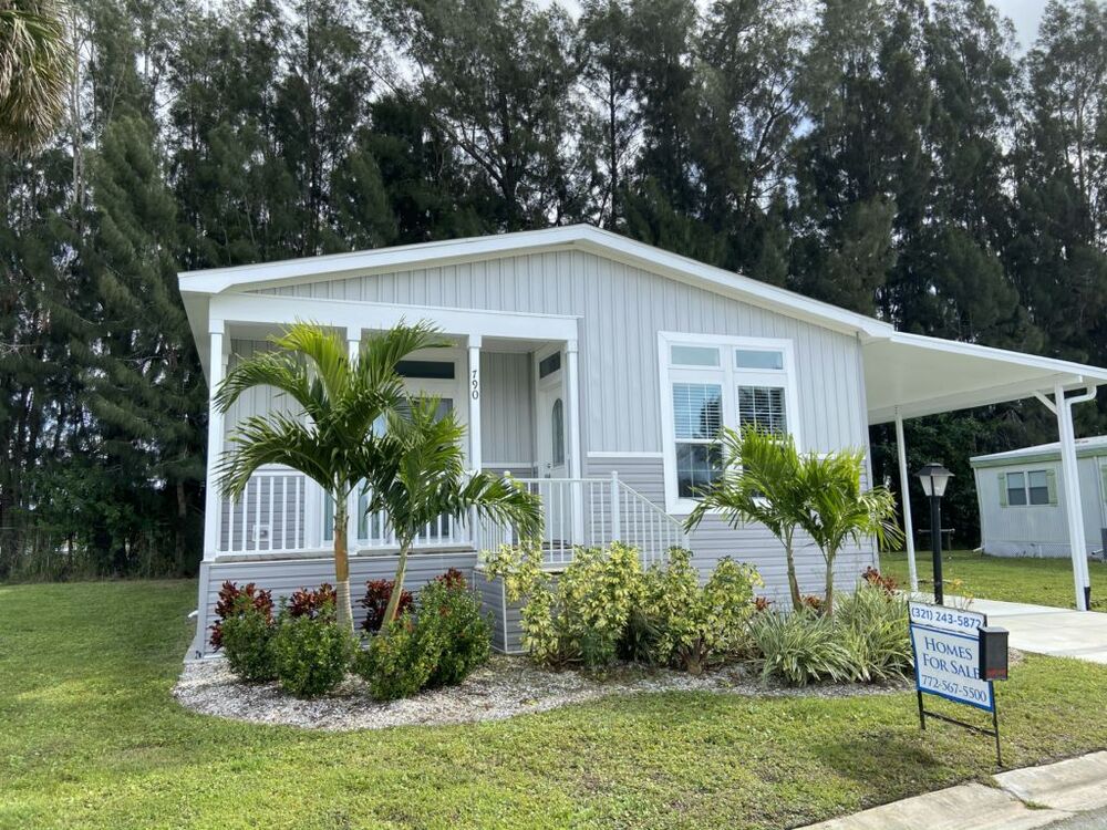 Welcome to Village Green a 55+ age-qualified active and vibrant community! Step inside an open floorplan with the kitchen island overlooking your new living and dining area ready for your guests! Enjoy the morning sun from your spacious front porch while sipping your coffee. Features include wood grain vinyl, LED lights, crown molding, island kitchen complete with upgraded energy efficient appliances, and farmhouse sink. Imagine relaxing or reading a favorite book with the lovely ambiance of your electric fireplace. The main bedroom is complete with tray ceilings and a fan. You can step directly into the ensuite bath that has dual vanities and an oversize step in shower. Your guest bedroom and a 3rd bedroom that can also be used as a den, home office or hobby room. You will find a spacious laundry area and a door of convenience to your carport. The home includes a large shed with electrical for additional storage and workspace. This home site is a short walk from all the amenities at the Swan Lake Clubhouse including the pool and lake. Feel free to bring your fishing pole to fish off the dock! Village Green is a premier 55+ community located in beautiful Vero Beach. The community features 3 beautiful lakes with fishing docks, 3 sparkling swimming pools and spas, tennis and pickleball courts, fitness center, horseshoe pits, shuffleboard, banquet facilities, community rooms, and onsite RV storage. Pet friendly! Come see all Village Green has to offer today! *PICTURES OF THE HOME ARE FOR DEMONSTRATION PURPOSES ONLY. Call our sales office for additional information.