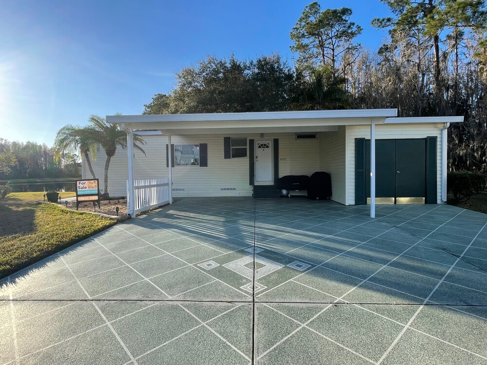 This amazing 1991 Palm Harbor triple wide sits on a breathtaking cul-de-sac lot including sweeping views of the golf course, lake, and woods. As you arrive, you'll appreciate the double wide driveway and separate golf cart driveway, complemented by an oversized shed. There's also a cozy sitting area on the lake, ideal for enjoying Florida's pleasant weather and watching the golfers. Once inside, you are greeted by a completely remodeled kitchen including granite countertops, tile backsplash, wall oven, flat surface cooktop, and the list goes on! The triple window over the sink offers great views of the lake and golf course. The kitchen is open to the dining room where they carried the same cabinets and granite countertops creating a custom hutch. The spacious living room has the same great views as the kitchen and leads you to the 4-season room. Abundant wildlife is right outside your windows in this room. The master bedroom is spacious and filled with natural light. Both bathrooms have been updated with new hardware, faucets, and comfort height toilets. Other updates completed to the home are 2021 metal roof, 2023 AC, 2025 Hot Water Heater, electrical panel, 2022 washer/dryer, and new landscaping. This home is a must see to appreciate the views and updates completed. The home is being offered turnkey. Call now for your private showing!