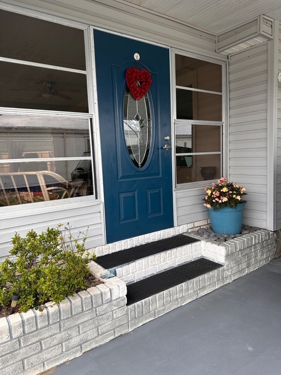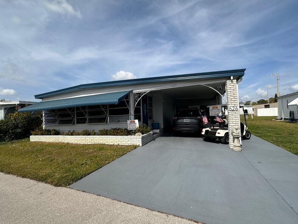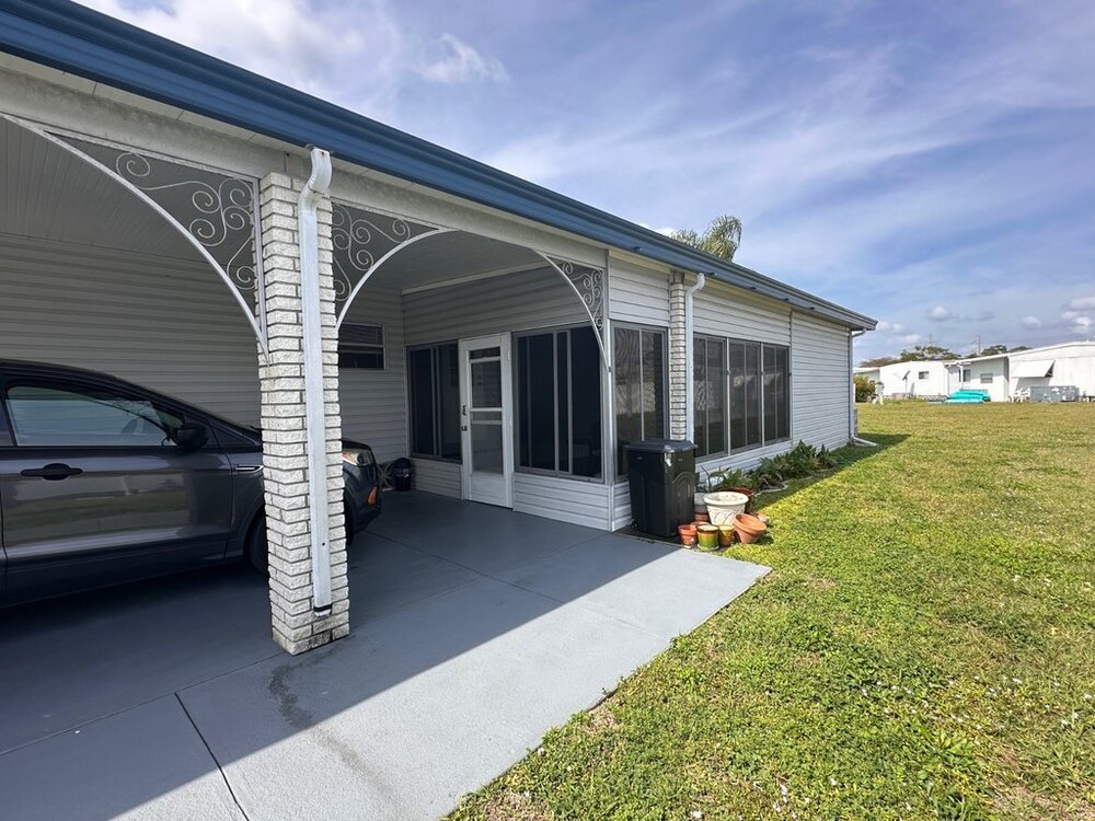 This beautifully kept home will meet all of your needs. It has a great lanai with real glass high impact windows and has AC connected to the main AC unit in the home. The dining room has lots of storage too, including a large built-in china cabinet. The kitchen has a newer French door fridge with ice-maker, smooth glass, top, self cleaning, stove, newer dishwasher, double sinks with water dispenser and lots of cabinets and counters. The floors were installed in 2021 with waterproof laminate flooring. There is cordless blinds throughout the home and beautiful wallpaper in the kitchen. A metal roof was installed in 2000 and has been recoated. AC unit was new in 2021. The roof and the AC unit both are under warranty. It has a new electrical panel plumbing has been checked and there are no leaks. The house was inspected in 2022! There was no hurricane damage to this home. The master bath has a new vanity & a walk-in shower and toilets are behind a privacy door and there are two closets in the master and one is a walk-in closet. Guest bathroom has been updated. The lanai covers the kitchen door and leads to the laundry room with the washer/dryer and storage space in the shed. Other special features include vinyl siding, a metal roof over, and a large capacity carrier HVAC unit unit. The rent is $1078 Approximately but that includes everything but cable TV and your electric. There are many amenities including lawn care. Call today is moving ready for you!