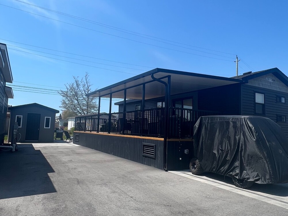 Welcome to Quarry Meadows #177! This newer vacation home is the popular Onyx model, with 3 bedroom, 1 bath and an open concept living and dining room. White cabinetry is bright and modern inside with ceiling beam accents, new stainless steel appliances, lots of storage, a large kitchen island and a fireplace. This cottage is MOVE-IN READY! Outside the large deck is partially covered, and steps down to the rear patio, firepit and large shed. Walking distance to the new owner s pool and clubhouse.