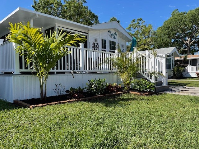 This charming home features a spacious front deck and is centrally located, offering convenient access to amenities and picturesque walkways. Inside, you'll find a beautifully decorated raised lanai, two bedrooms, and 1.5 bathrooms, along with a dedicated laundry room for added convenience.