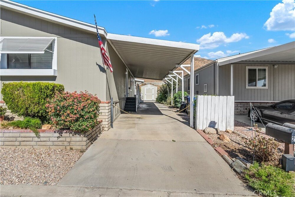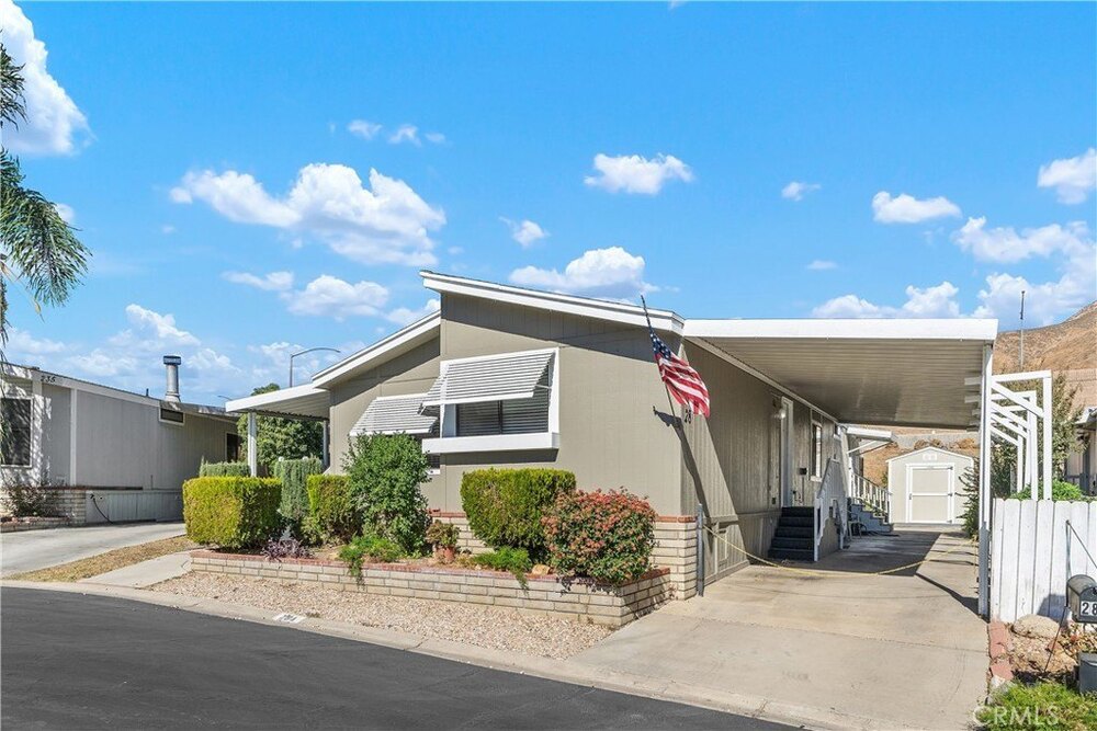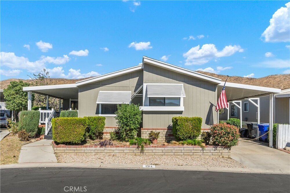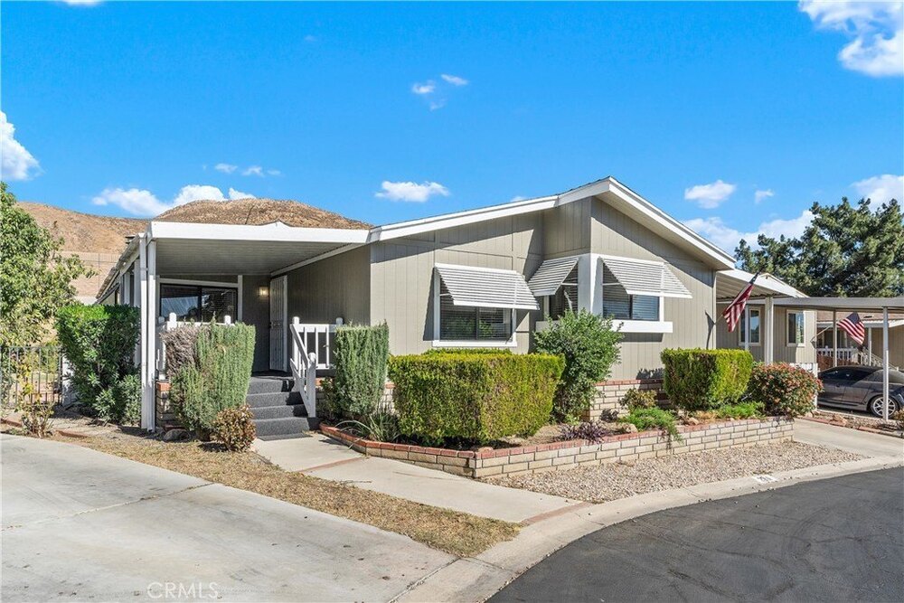Welcome to this beautifully upgraded mobile home in Bravo Estates. Ideally situated in a serene private cul-de-sac with a meticulously maintained yard that beautifully surrounds the home. Recently painted both the interior and exterior. Newly renovated with luxury vinyl flooring, new carpet, new outlets and covers, modern blinds, and stylish light fixtures. This home has an open floor plan with vaulted ceilings. Located near the kitchen is an indoor laundry area. Double doors to the right of the living room show a room for an office, den, or third room for guests. The home includes a brand-new storage shed and a spacious carport for your convenience. Enjoy scenic mountain views and access to a community clubhouse featuring a pool, park, and dedicated car washing area. Located within a well-maintained, privately gated community, this property offers a peaceful lifestyle with excellent amenities. All appliances are included in the sale, so you are move-in ready. This beauty is a must-see and will go quickly!