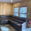 This premium park model is truly a home away from home and come completely furnished with a fully appointed kitchen, private bathroom, air conditioning, and flat screen cable TV. There is a primary bedroom with a queen bed, and a twin-over-full bunk bed in the second bedroom, plus a sleeper sofa in the living room. There is also a screened-in porch with patio furniture, plus a charcoal grill and picnic table for your outdoor enjoyment.