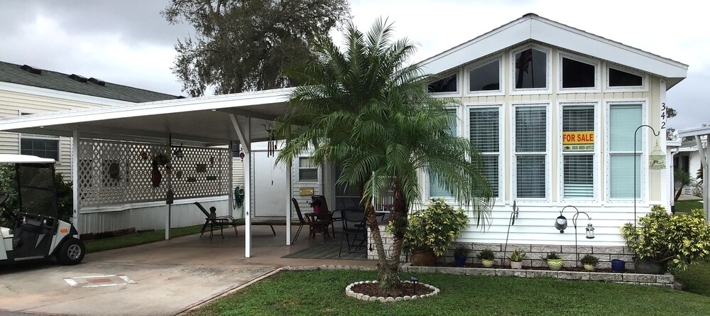 Looking for a relaxing fun vacation home with palm trees? This one bedroom one bathroom home is located in Southern Charm an Active 55+ community. Long driveway with carport, beautifully landscaped and has a 6 x 8 shed. The interior has an open floor plan with a nice size kitchen with plenty of cupboards and counterspace. All electrical appliances, dining room area with a bay window! A lovely bathroom with a tub/shower combo. The bedroom has a queen size bed with plenty of closet space. Add this home to your list! Ask for SOC 342. Conditions and Restrictions may apply.