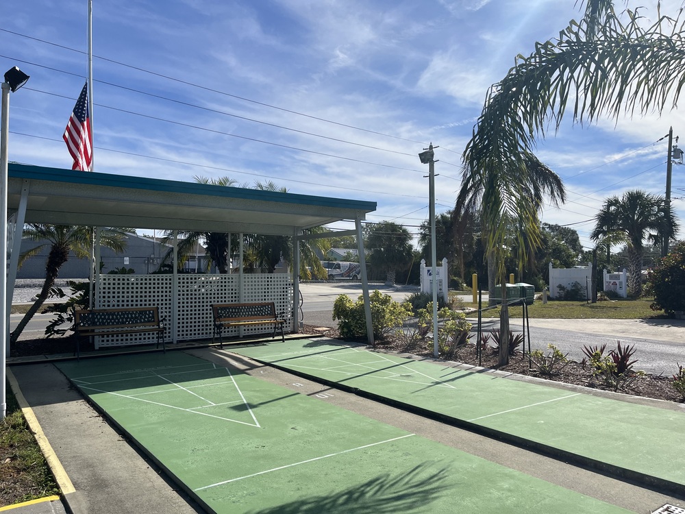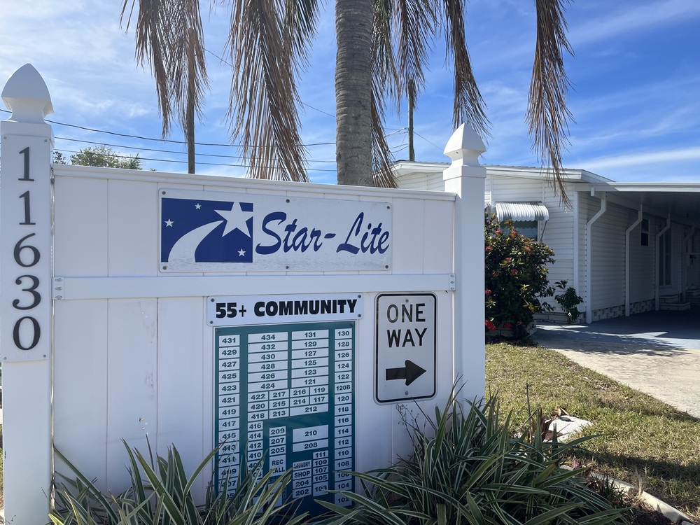 This 2 Bed/1.5 Bath home sits on one of just fifteen double lots in desirable Star Lite park, just a half-mile from Indian Rocks Beach and offering one of the lowest monthly rents in the county. Recently painted and cleaned, the split-plan interior - Bedrooms at either end - offers space-saving built-in closets and dressers in both Bedrooms, an En-Suite Half Bath in the Main Bedroom, plus a large Living Room and cozy Eat-In Kitchen. Hall Bath offers a full tub, large vanity and lots of additional storage. Laminate flooring through most of the home, with carpeting in the back Bedroom. Window unit A/C to keep you cool, but there is pre-existing infrastructure for central A/C if desired. Outside find designated parking for 2 cars and possibly the best feature of the home: a large covered, shaded lanai. The existing roof over the concrete pad offers an opportunity to add to the square footage of the home; enclose it, air-condition it, and let your imagination run wild. Come take a look! Star Lite park is a sweet 55+ community minutes from Indian Rocks Beach, offering a renovated Community Hall, Shuffleboard courts, a Laundry Center, and a small exercise area. $700 monthly fee includes assessments for water, sewer, trash collection and lawn mowing. Indoor cats allowed. Information contained herein is deemed reliable but not guaranteed. Sun Realty cannot guarantee or warrant the accuracy of this information or condition of any property. Buyer to confirm park rent, fees, rules and requirements. Home and pest inspections are always recommended.