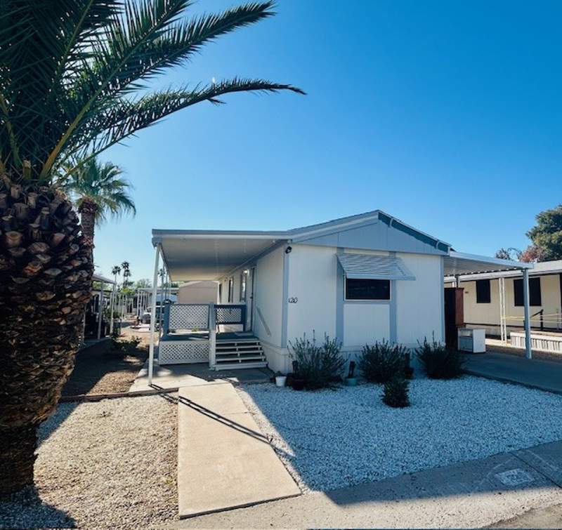 This charming 728 square foot manufactured home in the Jadestone On Olive community in Peoria, AZ offers 2 bedrooms and 1 bathroom. Built in 1995 by Cavco, this well-maintained home features a spacious living room, a cozy dining area, a comfortable master bedroom, and a well-equipped kitchen with appliances. A new roof 2 years ago. The exterior of the home includes a convenient carport, a relaxing patio for outdoor enjoyment, and a storage shed for extra space.
