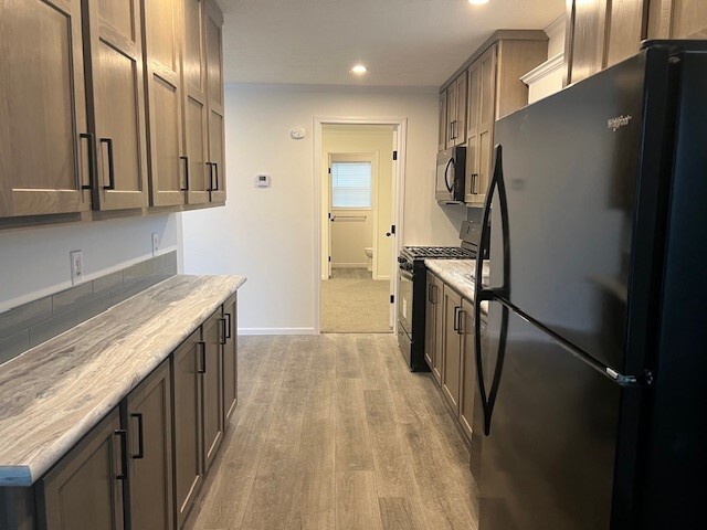 3 bedroom/2 bath Open Floor Plan 42 inch cabinets, Vinyl Floor throughout, Carpet in bedrooms Full-Size Washer/Dryer, Full Kitchen Appliance Package, 8 8 Storage Shed