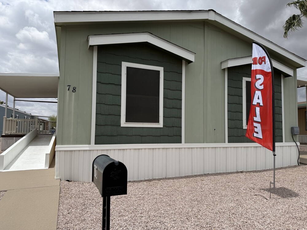 Welcome to this stunning 3-bedroom, 2-bath mobile home, perfectly situated in a prime location of an all age community. Offering ample space and incredible landscaping potential. Step inside to find an open-concept design that maximizes space and flow. The upgraded kitchen features a modern sink and white cabinets. The home also boasts a split primary bedroom for privacy, complete with two full closets and a luxurious spa tub and stand-up shower for ultimate relaxation.
