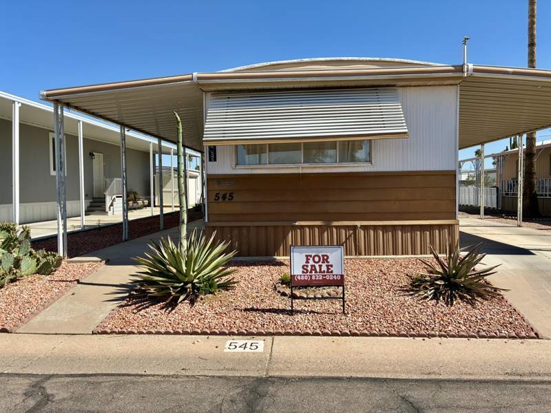 Welcome to this beautifully maintained 980 sq ft manufactured home, built by Marlette in 1980, located in the highly sought-after Citrus Gardens 55+ community in Mesa, Arizona. This inviting 2-bedroom, 2-bath home offers a spacious living room, cozy dining area, well-appointed kitchen, and a private master suite. You'll also appreciate the separate laundry room for added convenience.