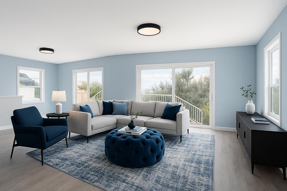 The primary suite features a large walk-in closet, double sinks, and generous natural light. Two additional bedrooms and a second full bath are located at the front of the home, offering flexibility for guests, family, or a home office.