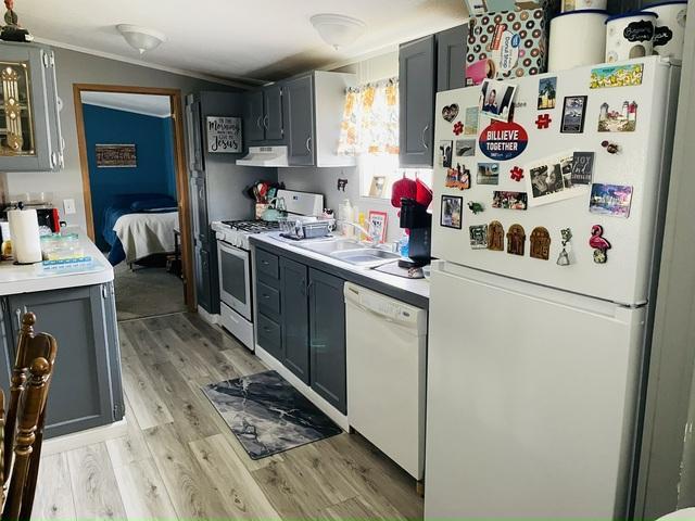 Step inside to find an open-concept floor plan, vinyl floors, and plenty of natural light. The kitchen boasts features like clean white appliances, custom cabinetry, and a kitchen island with storage on both sides that is perfect for both everyday living and entertaining.