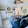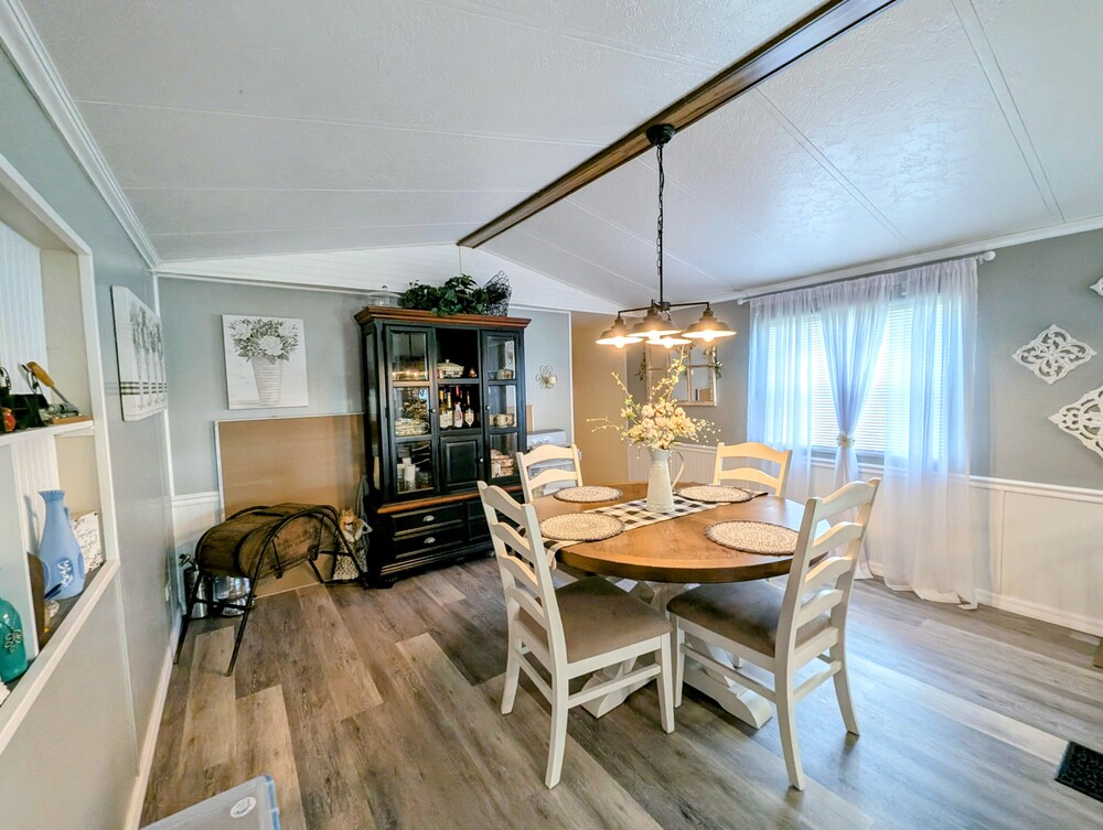 This beautifully updated home offers far more than its 896 square feet suggests! In addition to the main footprint, you'll enjoy a spacious living room addition, a dedicated walk-in closet room, and a stunning 12x26 screened-in porch-perfect for enjoying Florida mornings with coffee or hosting an afternoon cookout. Recent Upgrades Include: New subfloors and gorgeous new flooring throughout. Updated plumbing and a well-maintained HVAC (under 10 years old). Metal roof recently resealed and painted. A new mini split system was installed in the side room, currently being completed as a fully insulated and drywalled bonus space. Under-home storage plus a 10x18 workshop shed (with a reasonable offer, shed will stay). THREE driveways with ample parking tucked behind the home bluetooth speaker light in the recently remodeled bathroom. Set on an oversized lot with a serene lake view, the backyard deck invites you to relax and unwind at any hour. Inside, you'll find a huge kitchen with ample counter space, modern cabinets, and a sleek new farmhouse sink. The open dining area flows effortlessly into the spacious living room, creating a bright and welcoming layout. Three Seasons Mobile Home Park offers a low monthly lot rent of just $472, covering water, sewer, twice-weekly trash pickup, and full access to community amenities-all nestled in a vibrant, friendly 55+ environment.