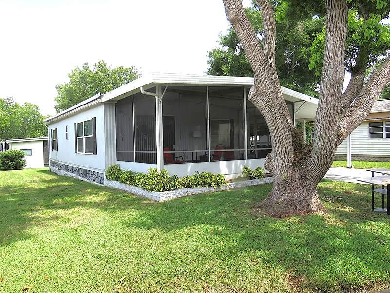 You will love the cozy feel of this open floor plan. The kitchen has been upgraded with granite countertops, soft close drawers and modern cabinetry, kitchen appliances convey. The flooring is vinyl plank throughout. Perfect two bedrooms, two bathrooms with walk-in showers. You will enjoy the screened porch with tile floor, outdoor fan and wonderful shade tree. The storage shed has hookups for your washer and dryer and has plenty of storage space. Roof resealed in 2019. This home is move in ready.