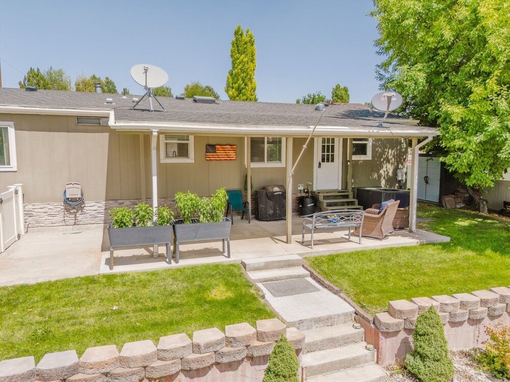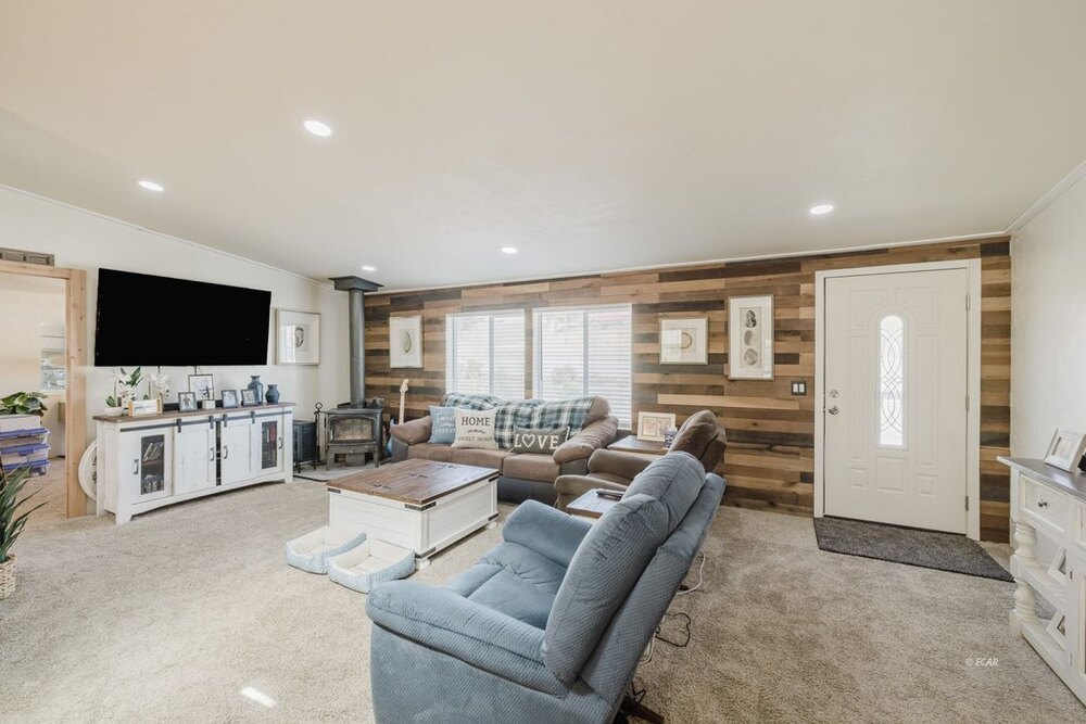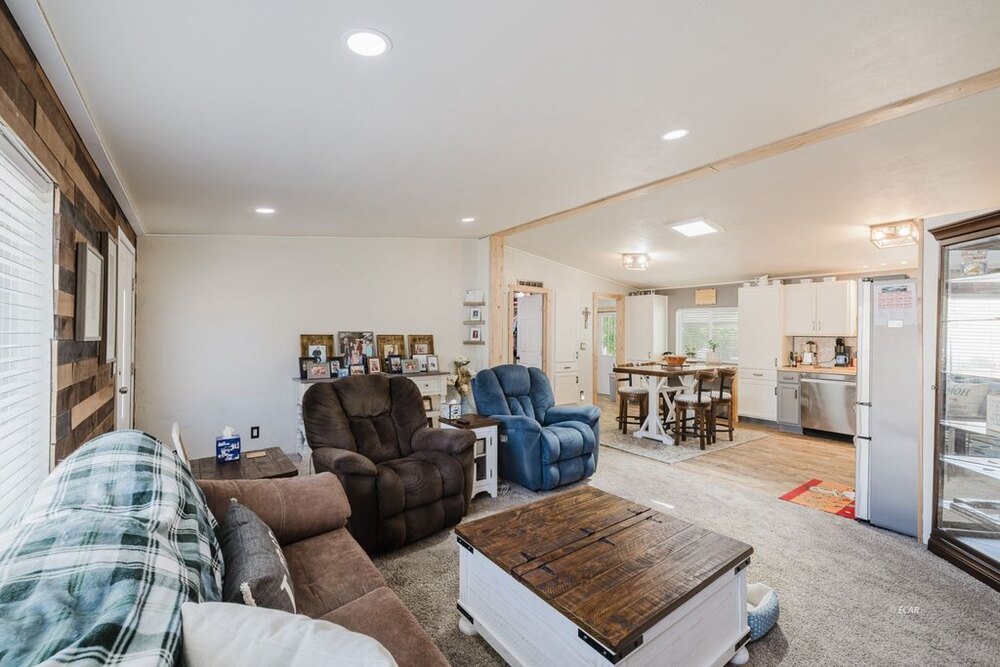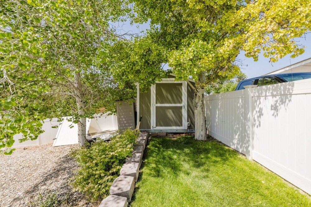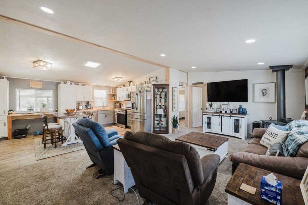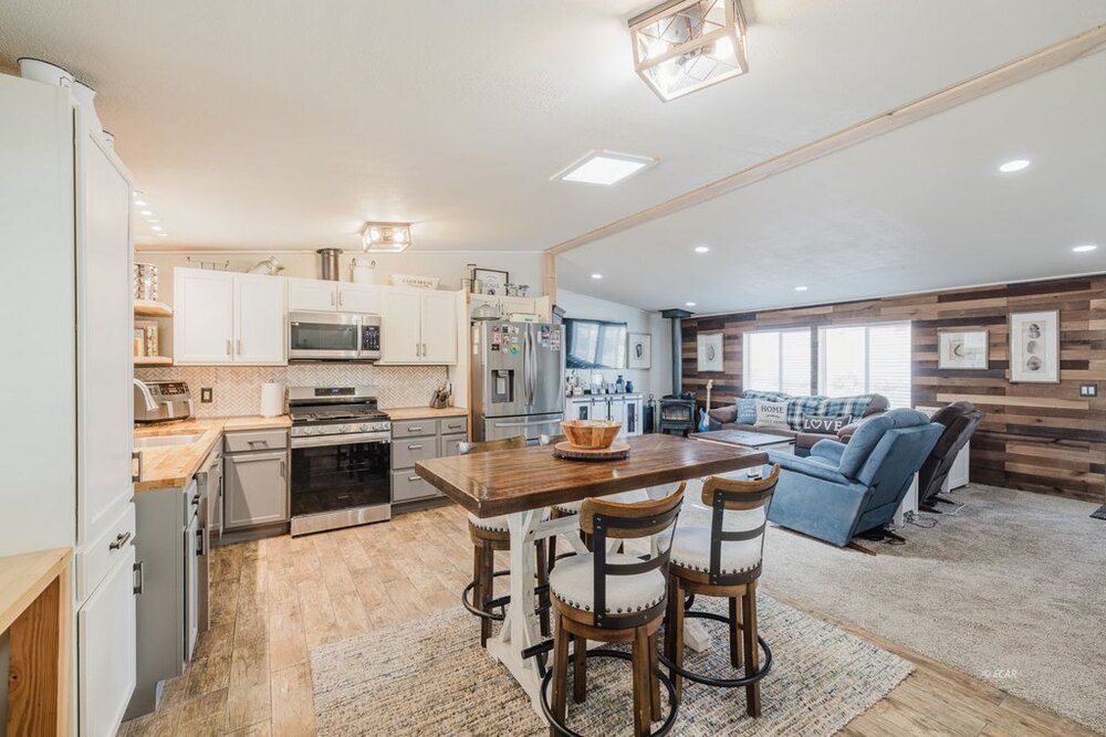 This stunning 3-bed, 2-bath home in Carlin has been thoughtfully renovated from the inside out, offering modern comfort with rustic charm. Step into an open-concept living space featuring updated lighting, alder wood trim, and stylish shiplap wall accents that add warmth and character throughout.The kitchen was updated in 2023 with newer appliances (all included!) and offers plenty of space for cooking and entertaining. The spacious primary suite was remodeled in 2024, boasting a luxurious jetted tub, dual sinks, and a beautifully modern design. Stay cozy during winter with a wood-burning fireplace, while efficient updates like re-piped plumbing (2019), central air and heating (2021) and a new roof (2020) provide peace of mind. Outside, enjoy a beautifully landscaped yard with lush grass, retaining walls, flower beds, and fruit trees that are in full boom - all kept vibrant by an automatic sprinkler and drip system. Relax under the covered patio, and take advantage of covered parking plus a large RV parking area with easy potential for power hookup. Vinyl fencing surrounds the property for added privacy and curb appeal. Don't miss out on this move-in-ready gem.