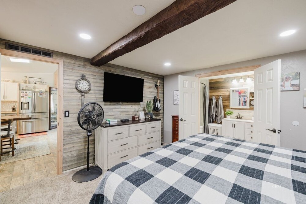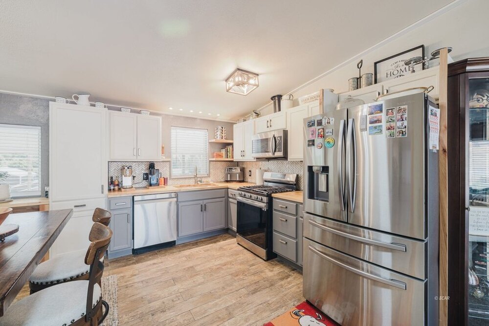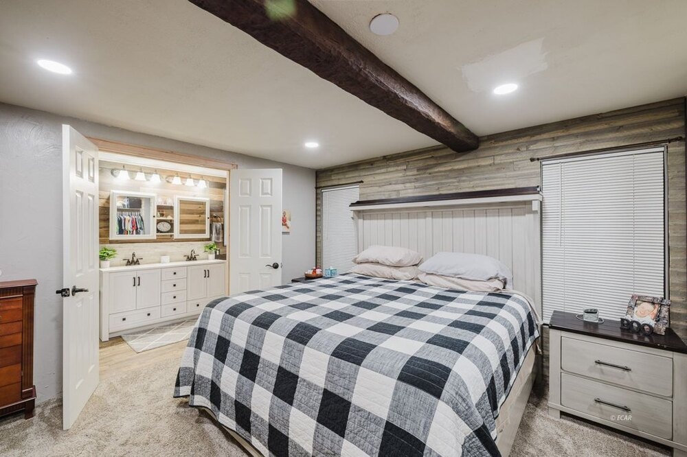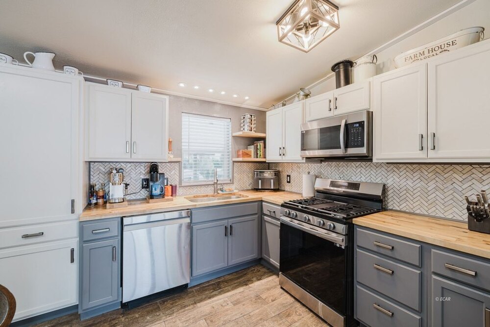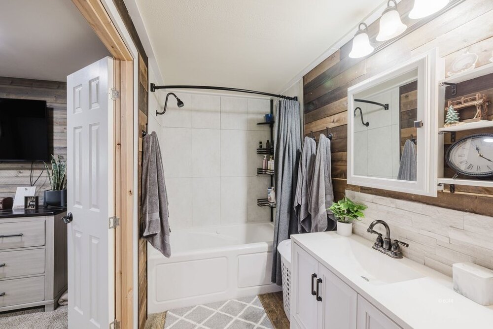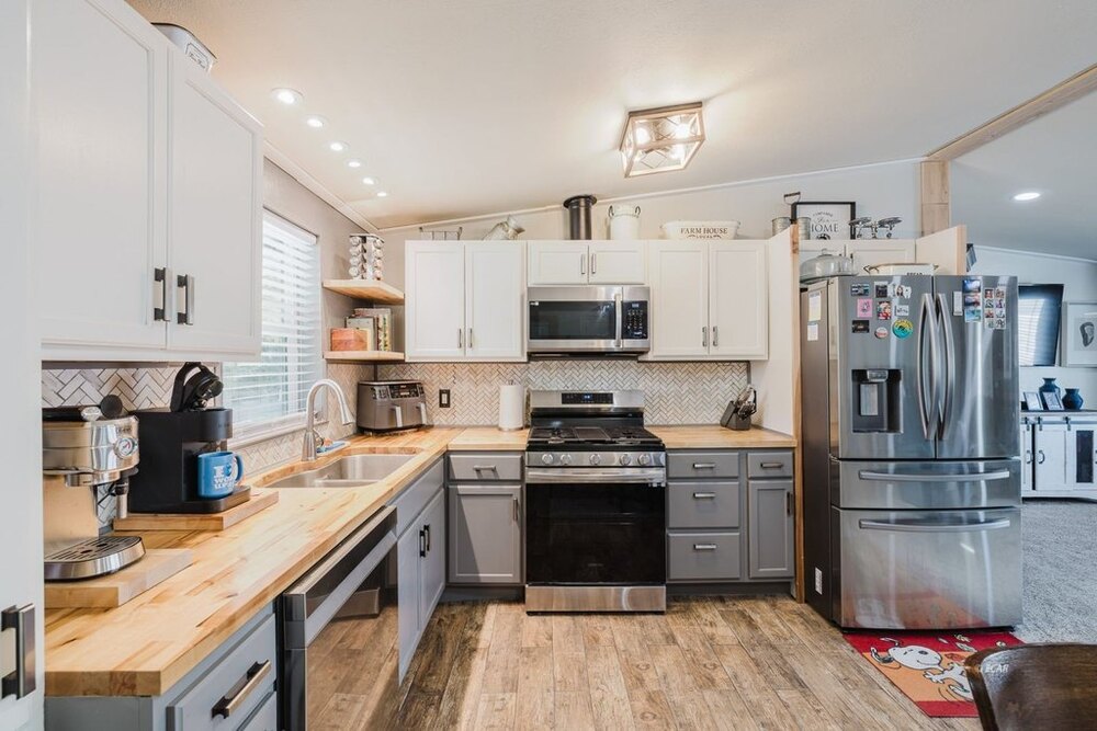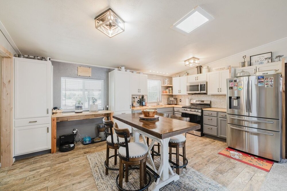 This stunning 3-bed, 2-bath home in Carlin has been thoughtfully renovated from the inside out, offering modern comfort with rustic charm. Step into an open-concept living space featuring updated lighting, alder wood trim, and stylish shiplap wall accents that add warmth and character throughout.The kitchen was updated in 2023 with newer appliances (all included!) and offers plenty of space for cooking and entertaining. The spacious primary suite was remodeled in 2024, boasting a luxurious jetted tub, dual sinks, and a beautifully modern design. Stay cozy during winter with a wood-burning fireplace, while efficient updates like re-piped plumbing (2019), central air and heating (2021) and a new roof (2020) provide peace of mind. Outside, enjoy a beautifully landscaped yard with lush grass, retaining walls, flower beds, and fruit trees that are in full boom - all kept vibrant by an automatic sprinkler and drip system. Relax under the covered patio, and take advantage of covered parking plus a large RV parking area with easy potential for power hookup. Vinyl fencing surrounds the property for added privacy and curb appeal. Don't miss out on this move-in-ready gem.