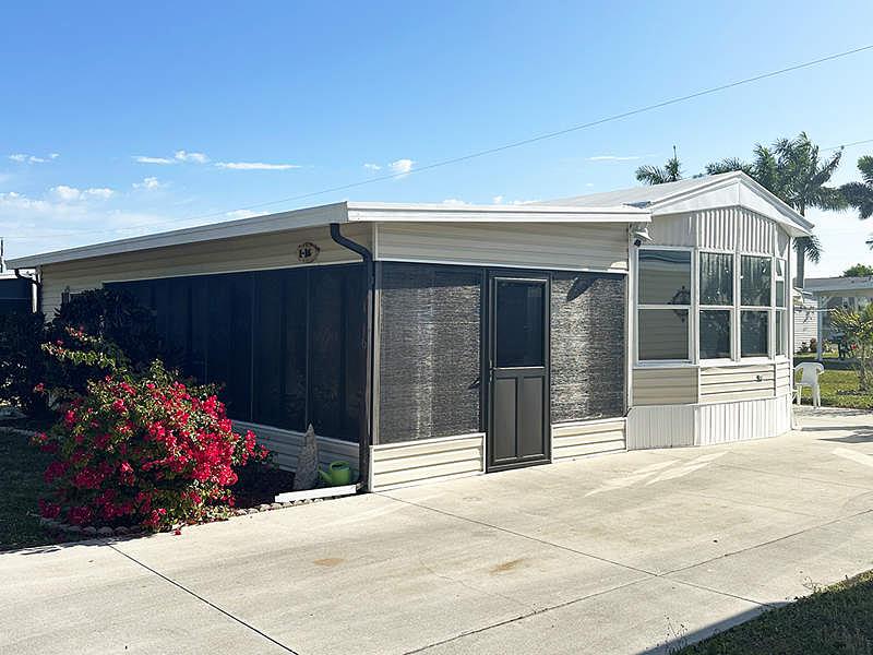 This charming 726 square foot Park Model home in Bonita Terra features 1 bedroom and 2 bathrooms, offering a cozy living space perfect for a couple or individual. Built in 1990 by Fleetwood, this mobile home is situated in a prime location in Bonita Springs, FL. The home includes a spacious living room, kitchen with modern appliances, and a comfortable bedroom with an ensuite bathroom. The second bathroom is conveniently located near the living area, making it convenient for guests. New air conditioning (with warranty) was installed in 06/2025. With a well-maintained interior and exterior, this home provides a relaxing retreat for residents to enjoy coastal living in Southwest Florida. Leased Land.