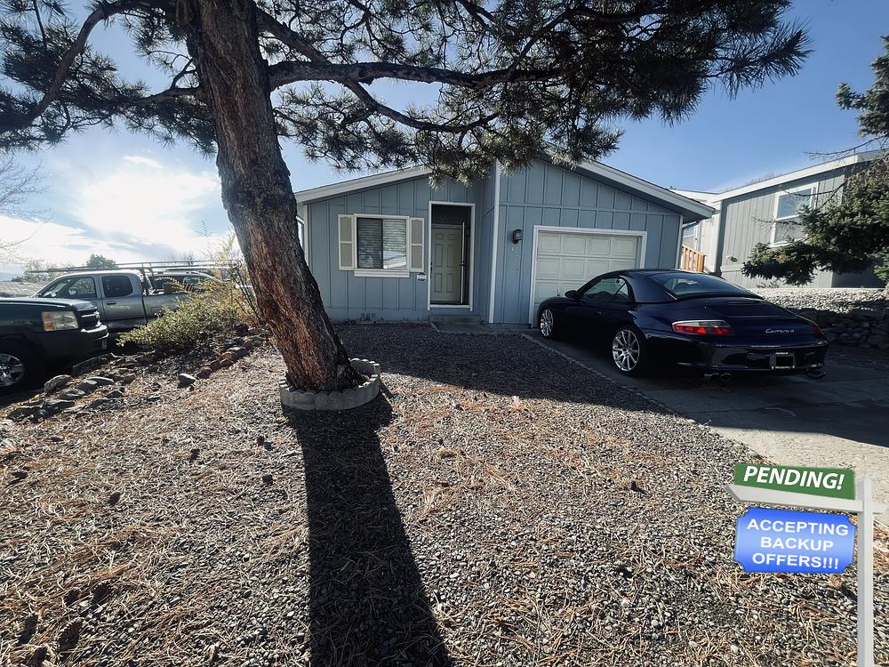 Features: This beautifully maintained home offers 2 bedrooms and 1 bathroom, along with a convenient one-car garage. Enjoy year-round comfort with central heating and air conditioning, enhanced by vaulted ceilings that create a spacious and inviting atmosphere. The property features an excellent roof, textured walls, and a ceiling fan for added comfort. Move-in ready, the home includes all major appliances—washer, dryer, disposal, built-in microwave—and a well-appointed kitchen with a pantry and a double-deep porcelain sink. Waterproof laminate flooring extends throughout the entire home, providing both durability and modern appeal. Two sliding doors bring in abundant natural light, with one opening to the patio and the other located in the master bedroom for added convenience. Outside, the property boasts a large, partially fenced backyard, offering ample space for outdoor enjoyment.