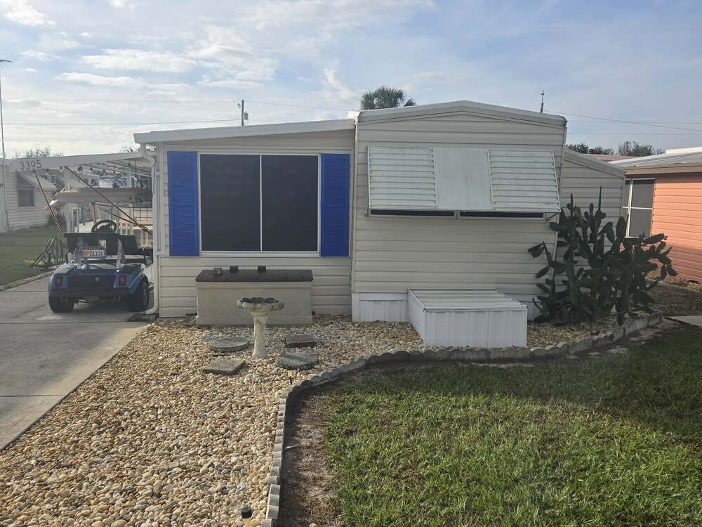 Step into this sweet and very well maintained, clean home. This home sits in a great location, not far from events and activities like pools, dog park, pickleball courts and so much more. This is a furnished, 1 bed, 1 bath home with an enclosed FL room, large driveway, small porch area outside for those cool evenings. Inside you will find the FL room with beautiful flooring throughout, laundry room attached with washer and dryer included, cute living room, nice size kitchen with lots of cabinet space, great size bathroom with shower tub and an adorable bedroom with a double bed and lots of closet space. This home also includes a golf cart for that full community living experience. Take a look today, it wont last long!