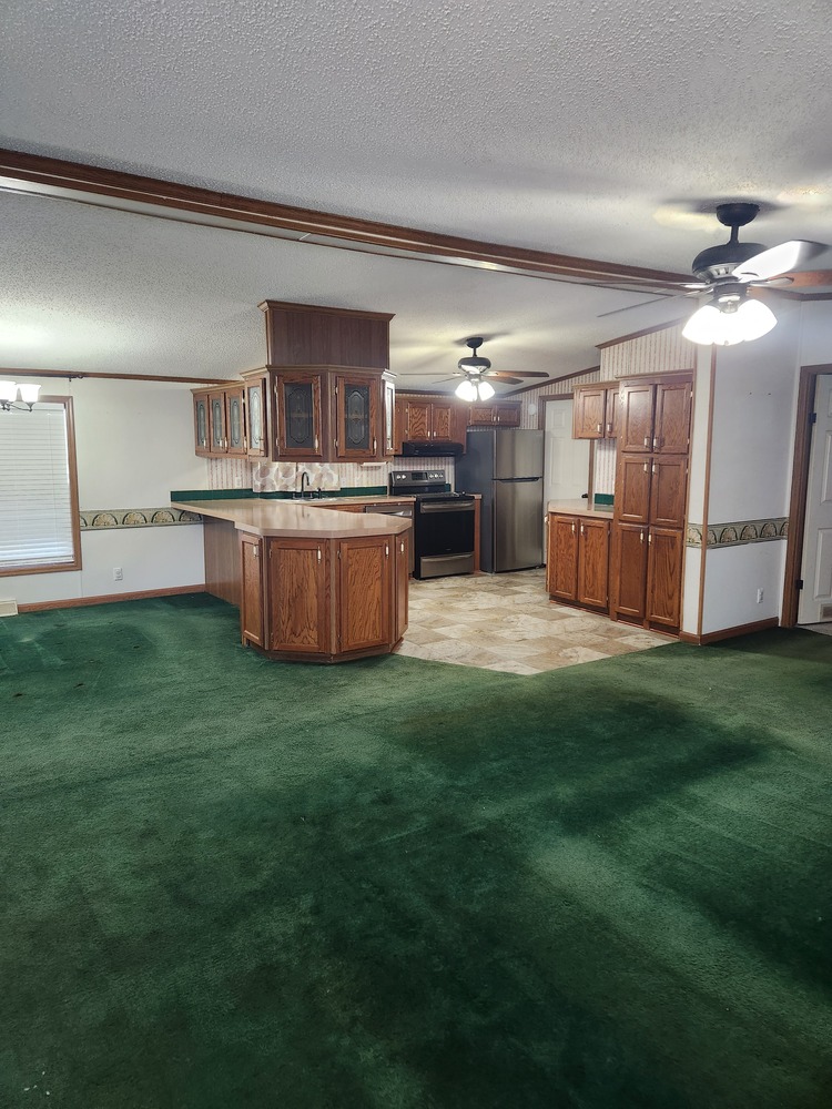 This beautifully remodeled 3-bedroom, 2-bath home is packed with value and comfort. Enjoy fresh paint, brand new carpet and vinyl flooring throughout. The spacious kitchen includes a full appliance package and abundant cabinet storage, while washer and dryer hook-ups add everyday convenience. The primary suite features an ensuite bathroom with a relaxing garden tub and oversized shower, and the guest bedrooms are served by a full second bath. don t miss out!
