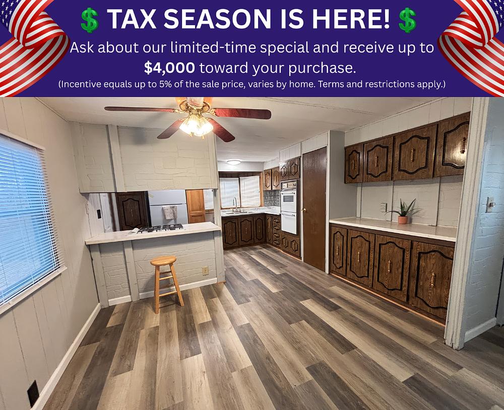 TAX SEASON IS HERE! Ask about our limited-time special and receive up to $4,000 toward your purchase. (Incentive equals up to 5% of the sale price, varies by home. Terms and restrictions apply.)