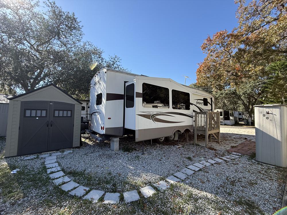 Spacious 2014 One bedroom with one bathroom 5th Recreational Vehicle on private lot. Tons of cabinet space, built-in furnishing, just bring your toothbrush! Utility shed and a patio area perfect for outdoor relaxation with an outside lounging area perfect for a barbecue. The park amenities include an Olympic-size swimming pool, shuffleboard courts, basketball, putt-putt golf, and much more! With a private owner on-site store for convenience grocery shopping and a restaurant inside with made to order breakfast, lunch and dinner. Conveniently located near Orlando's attractions, this property offers easy access to the 429 and 414 for a smooth commute. Your monthly rent covers water, sewer, trash pickup, and a security gatehouse. Located close to shopping, hospital and outstanding restaurants. The RV can be purchased cash payments to be determined by Owner.