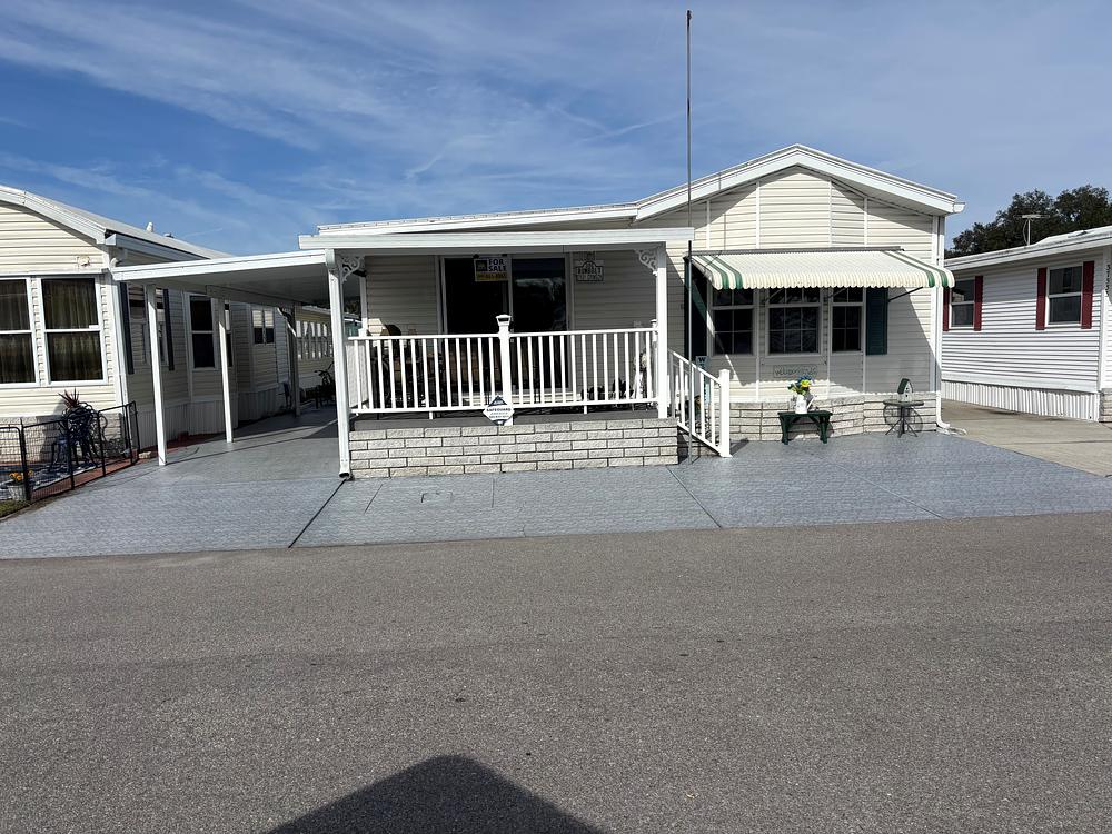 Just Listed - Beautifully updated 2BR/2BA in the Premier RV Resort! Your perfect getaway or cozy year-round haven awaits! This updated home combines style, comfort, and function in one package. Enjoy the covered front porch with your morning coffee of afternoon libation, or simply wave to your new neighbors and friends. Step inside to the nice large, open space that awaits you. Inside you will find a spacious kitchen with lots of cabinets and counter space. All appliances including a full size electric stove, Side-by-side refrigerator, and an over the stove microwave oven that was replaced in 2024. All pots, pans and dishes are included. Beautiful, newer flooring runs all the way through the house. The primary bathroom has a tub/shower combo with storage galore under the cabinets and a sky light. The primary bedroom features a 3-piece set with a queen size bed, large mirrored sliding doors and built ins inside. The second bedroom comes with a double bed and double closet doors. Storage won't be a problem here: The storage area houses a full size washer and dryer, storage galore with multiple shelves. The home has a new rubber roof and new flooring throughout. Schedule a viewing today before this gem is gone! The home is located in Rainbow Village Zephyrhills RV Resort, the premier active 55+ RV Resort in Zephyrhills Florida. Situated in a quiet country setting but minutes away from shopping, dining , and the hospital. Zephyrhills is one of the most popular destinations for retirees in America. Blessed with a warm climate and an unlimited number of recreational choices, this quaint community attracts many seniors to this beautiful area. So if your retirement dream are golfing, fishing, sunny days by the pool, or just going for a walk, at Rainbow Village you can live your best retirement. Centrally located close to hospital, shopping dining yet set in a picturesque country setting. Sun Homes is an equal housing provider. Home buyer must pass credit and background check. Monthly site rent fees apply. Call 813/782/5075 today to schedule an appointment.