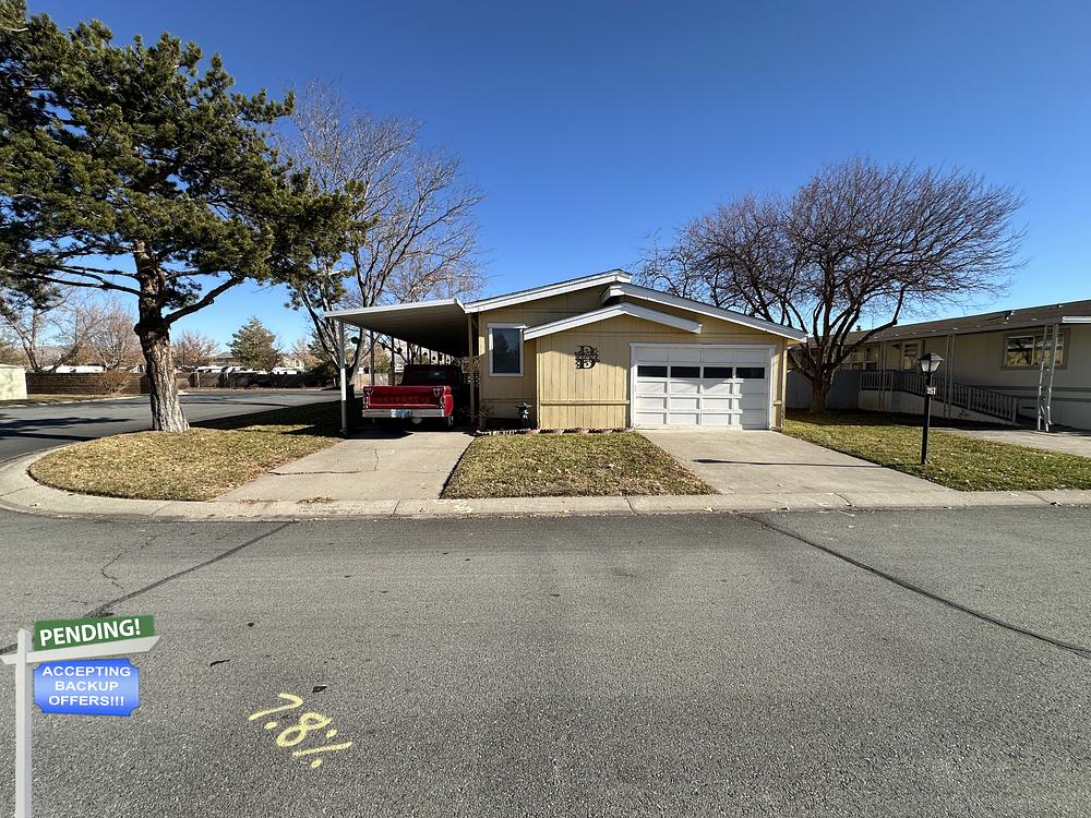 Welcome to this extensively renovated 2-bedroom, 2-bathroom home located in the area's most desirable senior park. This meticulously maintained property offers a perfect combination of modern updates, thoughtful design, and prime location with easy in-and-out access. Step inside to discover a bright and inviting foyer that sets the tone for this spectacular home. The living room is flooded with natural light from a row of brand new skylights, creating a warm and welcoming atmosphere throughout the day. The kitchenette area features its own large new skylight, ensuring plenty of sunshine while you prepare meals. The thoughtful floor plan includes a convenient bar with sink, perfect for entertaining guests. Recent updates include beautiful new flooring in both the kitchen and bathrooms, giving the home a fresh, contemporary look. All appliances are included, featuring a brand-new refrigerator for your convenience. Both bathrooms have been completely updated with new vanities and toilets, offering modern style and functionality. The dedicated laundry room comes complete with a new washer and dryer, making household chores a breeze. The master bedroom provides direct access to the home's crown jewel: a large covered deck with three separate entrances, perfect for outdoor relaxation and entertaining in any weather. This versatile outdoor space extends your living area and offers multiple access points for ultimate convenience. Significant mechanical and structural updates ensure years of worry-free living, including a new electrical box for enhanced safety and capacity, brand new skylights throughout, and a new garage door and frame. The single-car garage provides secure parking and additional storage space while the carport adds extra parking. Comfort is guaranteed year-round with air conditioning and ceiling fans throughout the home. Situated in a prime location within the park, this home offers easy access for coming and going, making daily life more convenient. The combination of extensive updates, abundant natural light, and desirable location makes this home a rare find in this sought-after senior community. Don't miss this opportunity to own a move-in ready home with so many recent improvements!