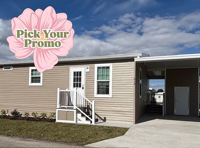 This stunning 2-bedroom, 2-bathroom manufactured home in the Tropical Haven community in Melbourne, FL is the epitome of modern comfort and style. Built in 2026 by Champion, this home boasts a spacious living room, dining room, master bedroom, and well-equipped kitchen. With vinyl siding and an asphalt driveway leading to a convenient carport, the exterior of the home is both attractive and practical.