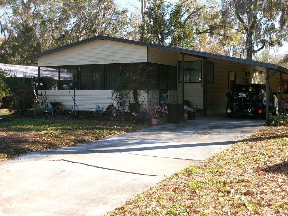 This lovely updated 2 bedroom 2 bath home offers new laminate floors, updated bathrooms, and spacious master suite. It is situated on a large, shaded lot in a very quiet neighborhood. There are laminate floors throughout and updated bathrooms. It is also equipped with an indoor laundry room. This home has a large living room that opens out to a shaded lanai. The A/C is pretty new at 4 years old. This kitchen has plenty of drawers and cabinet space. The master has 2 large walk-in closets (hers and hers?) and a large en-suite bathroom.