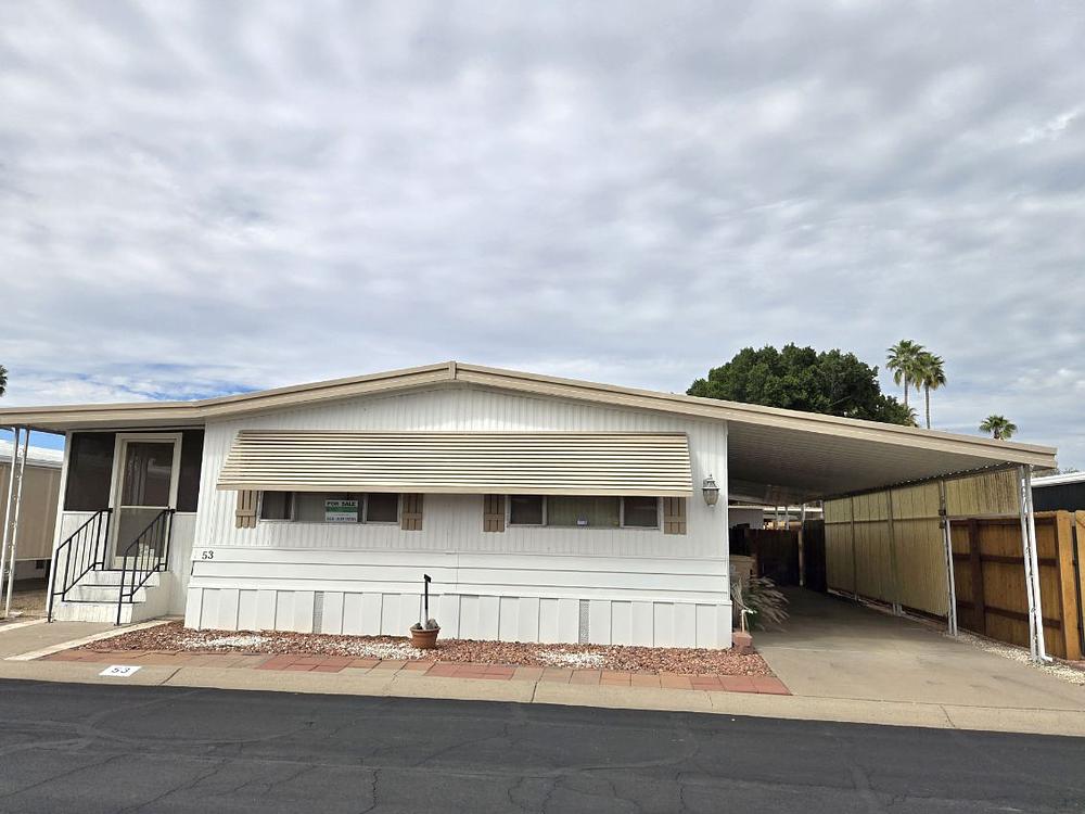 SPACIOUS 2 BED - 2 BATH HOME WITH AN ADDED FLEX ROOM COULD BE AND OFFICE OR CRAFT ROOM. SCREENED IN PORCH ON THE FRONT OF THE HOME. LOVELY KITCHEN WITH NICE CABINETS AND STAINLESS-STEEL APPLIANCES. ALL APPLIANCES STAY. MANY UPDATES THE ROOF WAS JUST RE- DONE THIS YEAR. BOTH BATHROOMS HAVE TILED WALK IN SHOWERS WITH SAFETY BARS. RAMP AT THE BACK DOOR EASY ACCESS. DOGGIE DOOR FOR YOUR PET LEADING OUT TO THE BACKYARD.YOU WILL LOVE THE AMAZING BIG BACKYARD WITH TALL PRIVACY FENCING. THE PATIO AREA HAS EXTENED COVERING MAKING IT GREAT FOR ENTERTAINING. BACKYARDS DON'T COME LIKE THIS TO OFTEN DON'T MISS OUT.STORAGE GALORE WITH 2 SHEDS. THIS IS IN A GREAT LOCATION CLOSE TO EVERYTHING. COMMUNITY IS VERY CLEAN FRIENDLY AND WELL RUN. SPARKING POOL, SPA, CLUBHOUSE FOR ACTIVITES CALL ELISE TODAY! 928-301-9255