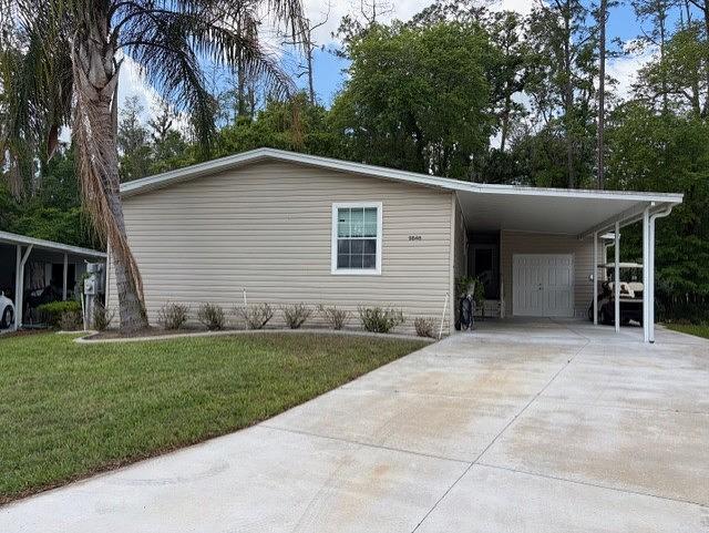 This is a newer home sitting on a quiet street with a woods view in the back. Once inside this 2018 Jacobson home, which has 1,344 SF of living space you will be greeted by an open concept dining room, kitchen, living room. Vinal plank flooring runs throughout the entire home. This home offers 3 bedrooms, of which one could be used as an office or den and 2 bathrooms. This home features Thermopane windows and wide crown molding. Directly off the kitchen is the laundry room and a small eating area. There is also a sliding glass door leading out to the lanai. This home will not disappoint and must be seen to appreciate all it has to offer.