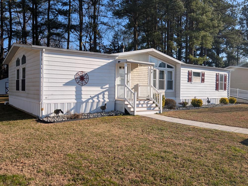Charming home located in Hyde Park - a 55+ community located just off Rt. 50 in Easton. This slightly renovated home features carpeted floors, stainless steal appliances, ceiling light/fan fixtures and a covered deck. Boasting +/- sq. ft. of living space, you have plenty of space with two bedrooms, two full bathrooms, a living room, nice sized kitchen and dining area, and a separate laundry room. You have convenient off street parking with the concrete parking pad, a covered porch and storage shed. Enjoy the the summer poolside at the newly renovated/remodeled clubhouse and pool area and play on the shuffleboard courts! Compete in disc golf, let your dog mingle in the dog park or fish in our catch and release pond.