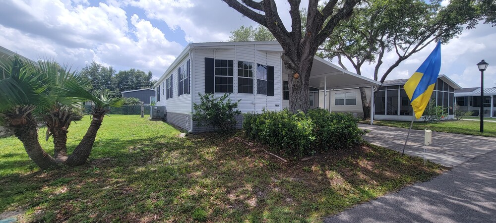 Located in Gulfstream Harbor an Excellent 55+ Active Community in Orlando, FL. The modern updated 2 bedroom 2 bath home with Bonus Room is move in ready. Priced to sell quickly!! This home includes full-sized inside washer and dryer, new stainless style kitchen appliances, in addition to all new flooring throughout inside of home. Freshly painted inside and out as well. Includes large Newly Carpeted outdoor screened in area - very spacious for extra entertaining area. New light fixtures in all rooms and New Ceiling fans with lights in living room, bonus room and Primary Bedroom too with remote controls. The new updated programmable thermostat makes for efficient electric bills. This home is bright and airy with lots of windows for great lighting. New kitchen disposal, all new plumbing, Covered, wide carport and all homes include locking outside storage as well. Call us today to schedule your personal showing.