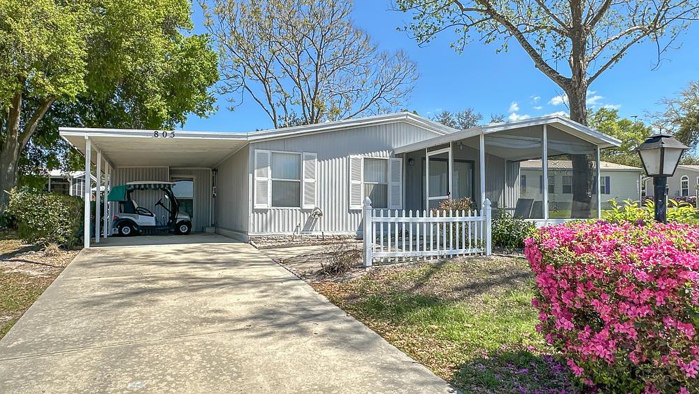 This beautifully maintained 1989 home is located in Water Oak Country Club Estates, a premier Sun Communities 55+ active adult community in Lady Lake, Florida. The property features a spacious Florida room and comes fully furnished, including a golf cart for easy travel within the neighborhood. Recent interior updates include a mix of cozy carpet in the bedroom and durable laminate flooring in the living areas, while the bathroom is equipped with a modern walk-in shower. For peace of mind, the home boasts significant mechanical upgrades, including a new roof, a 5-year-old A/C system, and a water heater replaced in 2016. Residents of this community enjoy access to resort-style amenities such as an 18-hole golf course, two heated swimming pools, and a variety of sports courts